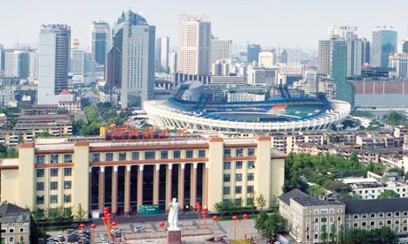 Amid a clutter of 24-hour arc lights, gigantic cranes and dumper trucks, a behemoth is rising out of a field of churned mud on the outskirts of Chengdu in south-west China. Commuters skirt its vast perimeter fence on their way to the new metro link that cuts under the city. They barely glance at what looks like just another huge construction project in a cityscape that changes every month.